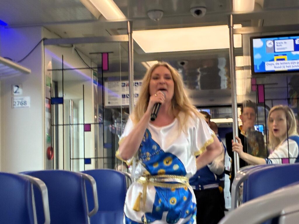 De trein vervolgde zijn weg richting Breda. Er werd massaal meegezongen met allerlei bekende meezingers. Denk aan de Village People met YMCA en natuurlijk niet te vergeten Guus Meeuwis met Per Spoor (Kedeng Kedeng).